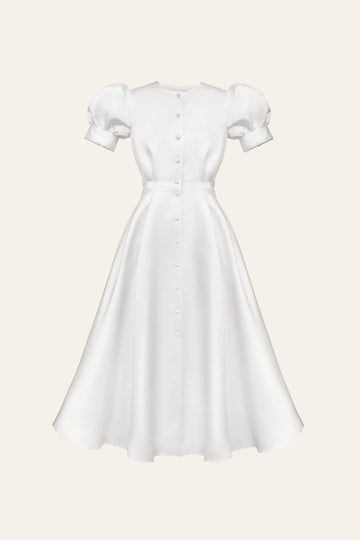 Vestido Midi com Botões Frontais e Saia Volumosa