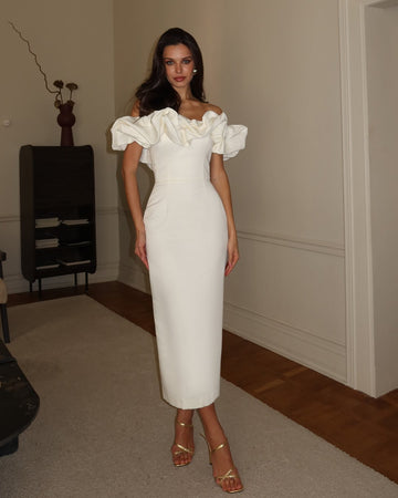 Vestido Midi com Saia Voluminosa em Tom Neutro