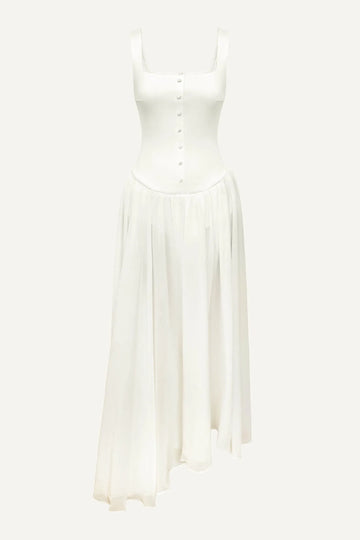 Vestido Longo com Saia Esvoaçante e Detalhe de Botões